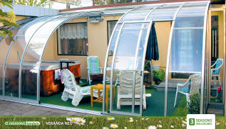 VERANDA ™ Как подсказывает само название павильона, модель VERANDA предназначена для закрытия садовых террас, вписанных в архитектуру зданий, а также балконов и лоджий, из которых создается «домашний оазис» спокойствия и отдыха. Павильон расширяет жилое пространство дома или квартиры. Модель отличается современным органичным дизайном. Конструкцию можно легко приспособить к различным формам закрываемых пространств, разной высоте подоконников, ограждений и высоте примыкания к стене. Достоинством конструкции является возможность максимального открытия. Применение модели снижает расходы на отопление и повышает теплоизоляционные свойства здания. ТЕХНИЧЕСКИЕ ПАРАМЕТРЫ